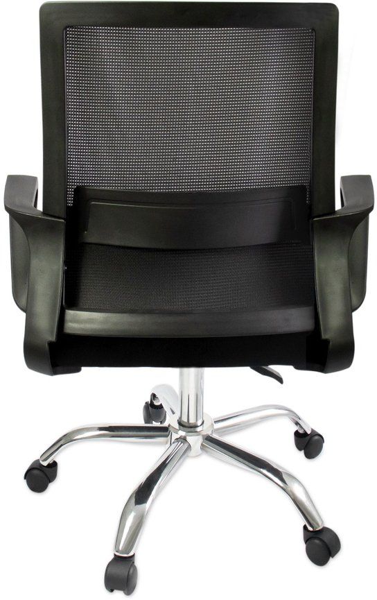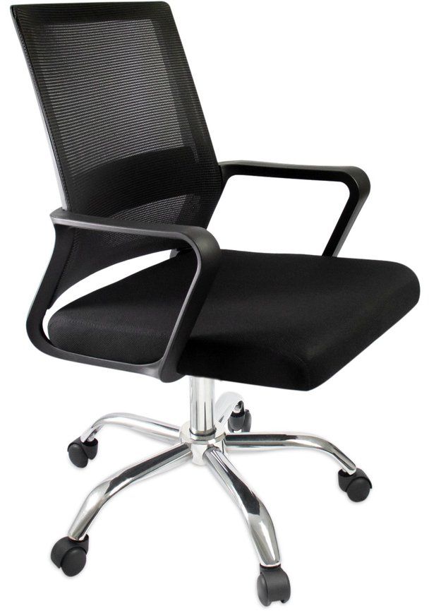 გორგოლაჭებიანი საოფისე სავარძელი ბადის საზურგით და სიმაღლის რეგულატორით.