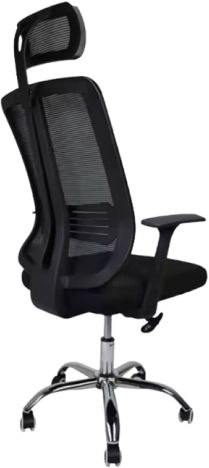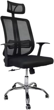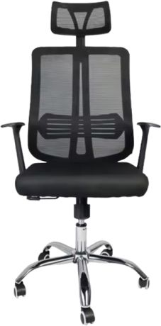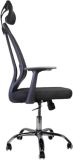 საოფისე სავარძელი ნაჭრის ზედაპირით და ბადის საზურგით.