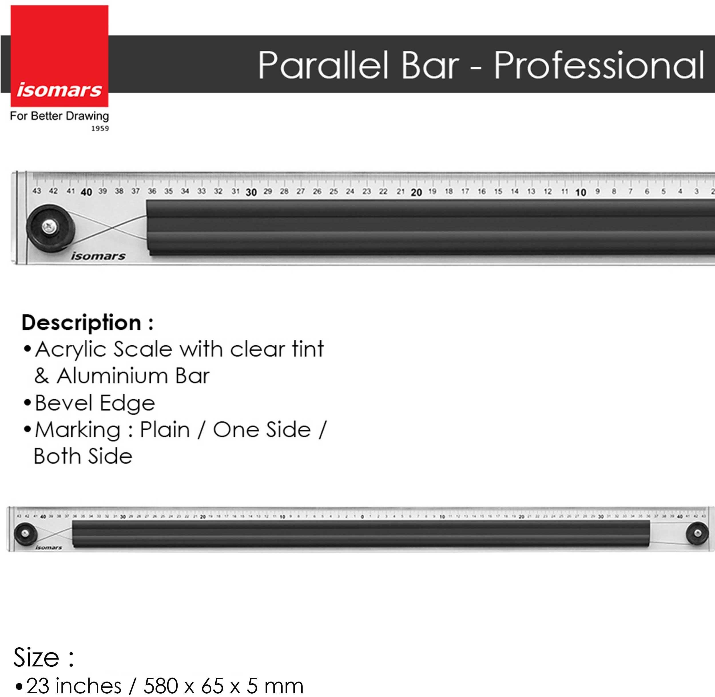 სახაზავი Parallel Bar, ალუმინის, პროფესიონალური 58x6.7x0.5სმ, ჩასადებით Isomars