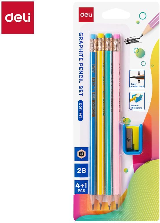 უბრალო ფანქარი საშლელით და სათლელით Deli 4 ცალი