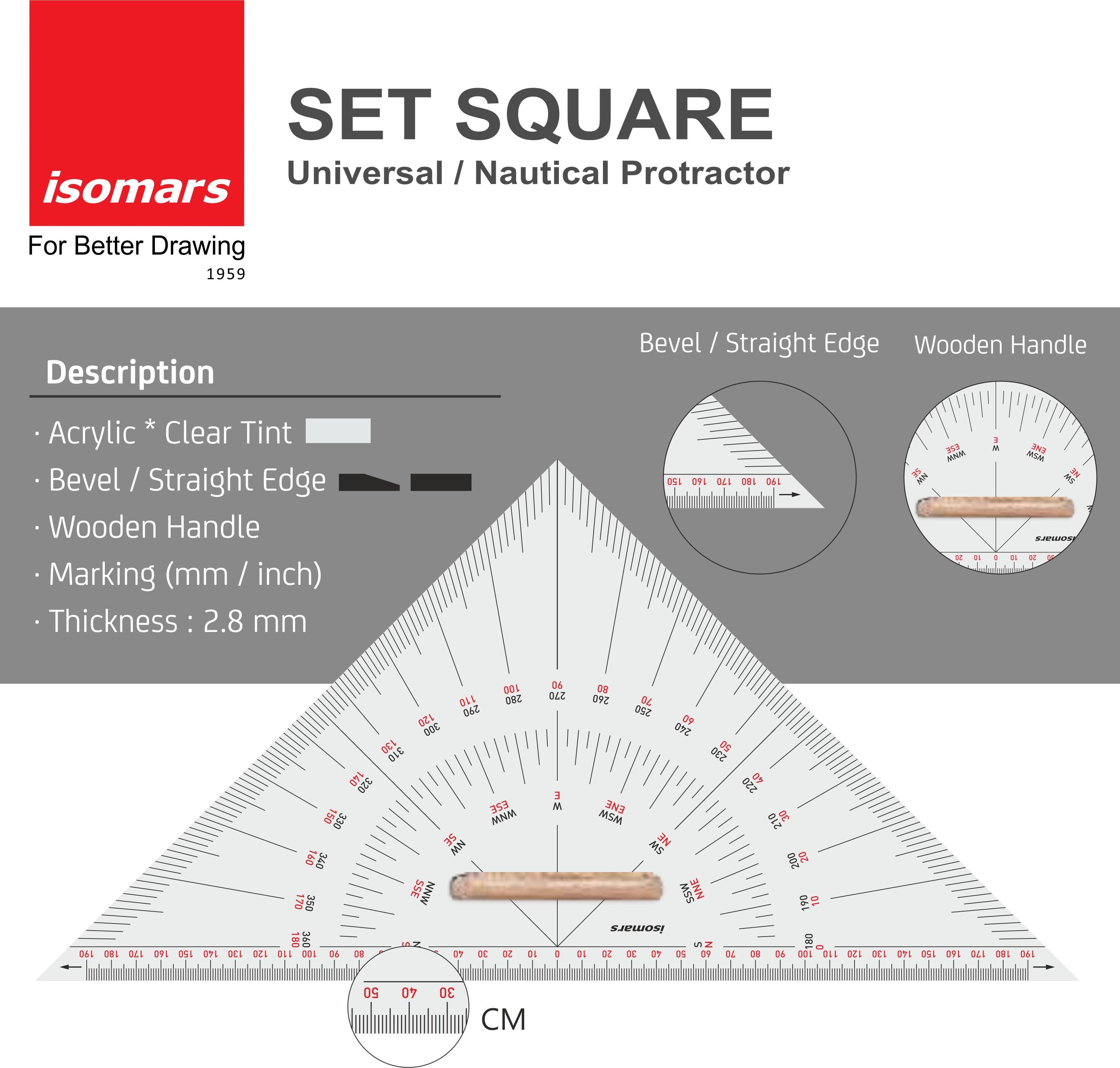 უნივერსალური სამკუთხა სახაზავი/ პროტრაქტორი Isomars 30სმ