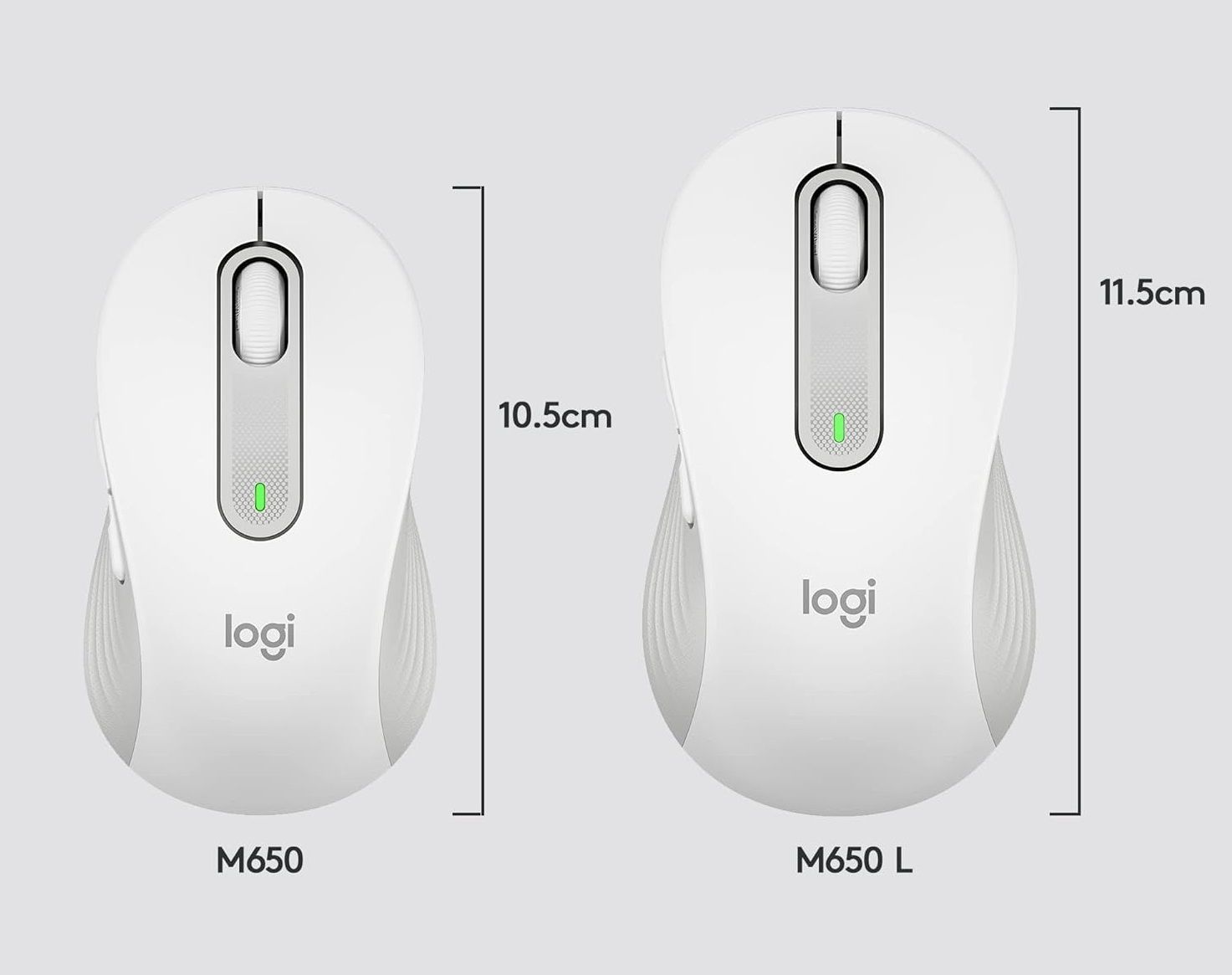 უსადენო ბლუთუზ მაუსი Logitech M650L, თეთრი, DPI 4000, 118.7 x 66 x 42მმ, L910-006238