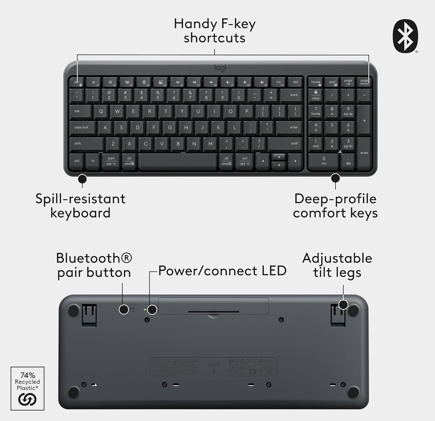 უსადენო კომპაქტური კლავიატურა + მაუსი LOGITECH MK250, GRAPHITE, RUS, 2.4GHZ/BT, INTNL, 973.
