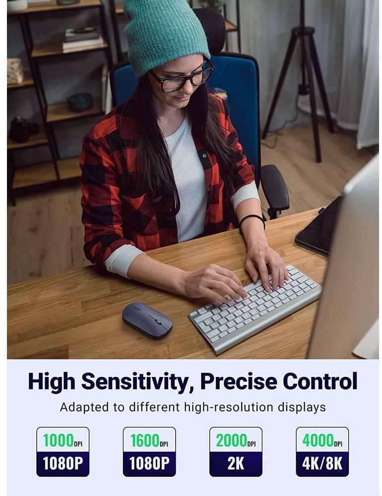 უსადენო მაუსი 2.4G, UGREEN MU001 (90372) Wireless 2.4G Slim Silent Mouse, 4000DP, ღია შავი.