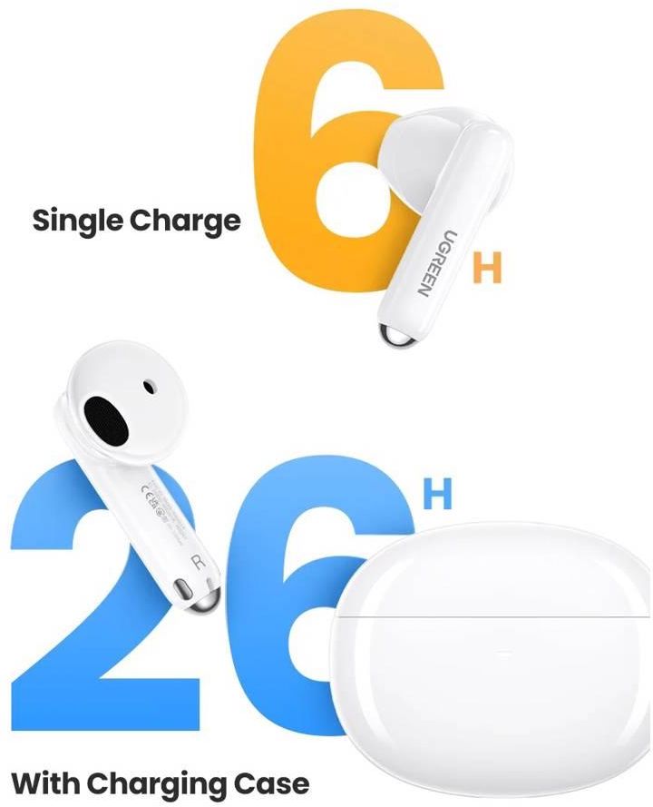 უსადენო ყურსასმენები, UGREEN WS201(15612) TWS HiTune H5, Bluetooth, Ipx5, თეთრი.