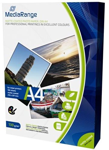 Media Range,- შეკვრა ქაღალდის 100 ცალიანი, A4, 130 გრამიანი, Inkjet Matte, ცალმხრივი