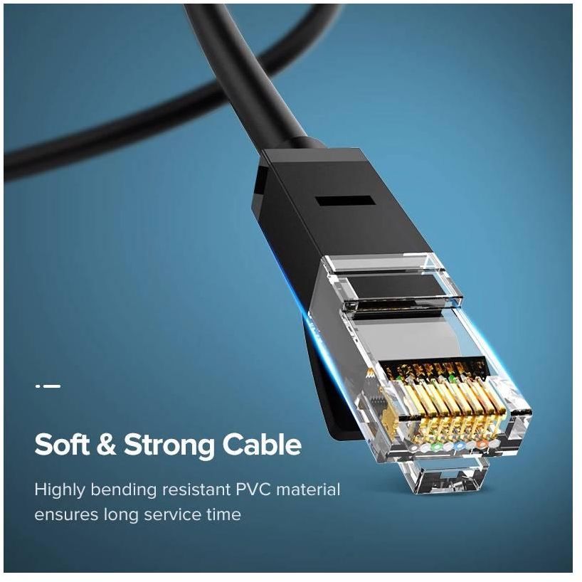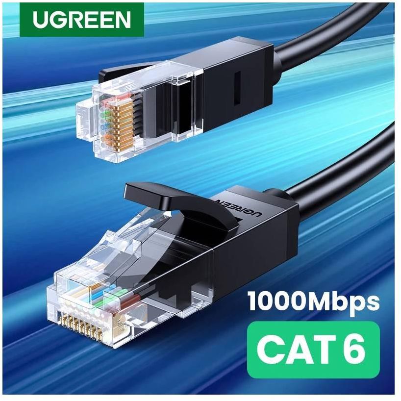 ქსელის კაბელი 8 მ, UGREEN NW102 (20163) Cat6 Patch Cord UTP Lan Cable, შავი.