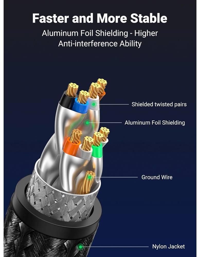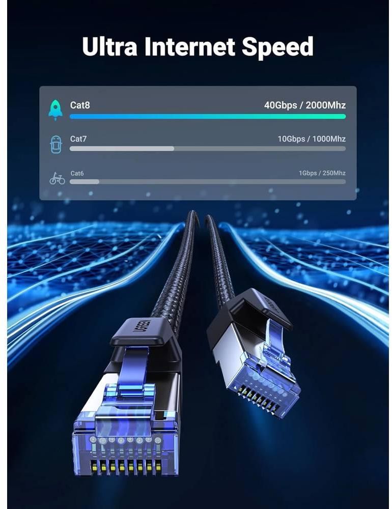 ქსელი კაბელი UGREEN NW153 (80433), CAT8 Patch Cord LAN Cable, 5m, Black