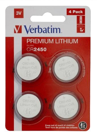 შეკვრა ელემენტების 4-ცალიანი CR2450 Battery Lithium 3V 4 Pack (049535) Verbatim