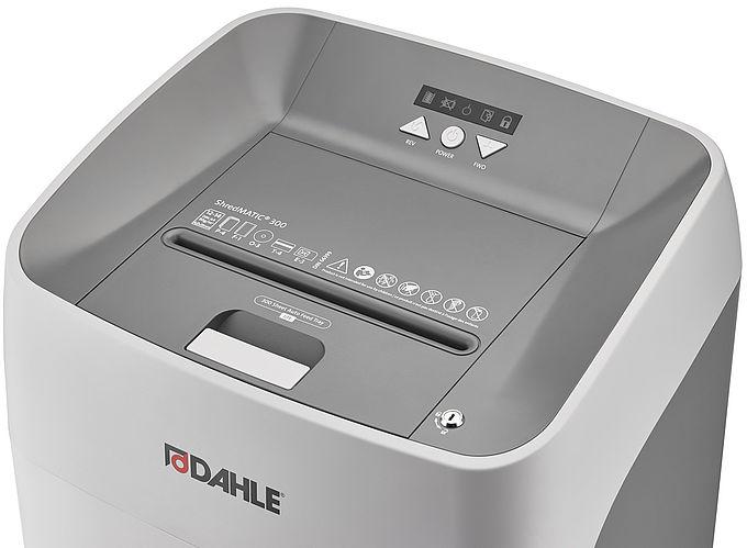 შრედერი DAHLE ShredMATIC®300 ავტო მიწოდება 80გრ 14/300 ფურცელი, უსაფრთხოების დონე: P-4/F-1/O-3/T-4/E-3