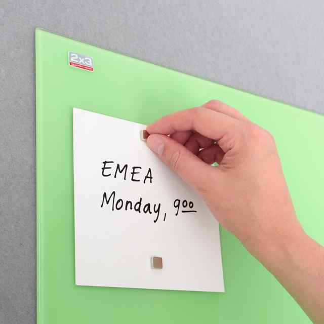 Magnetic glass board combines perfect design, saturated colours and elegance. Ideal for office, restaurant, kitchen, hall, also for living room or bathroom. The board is made of glass (covered with paint on the other side) and galvanized sheet bonded together. Dry-wipe properties let you make notes or decorate that can be changed whenever you need. Easy mounting.