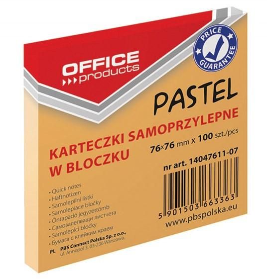 ჩასანიშნი წებოვანი სტიკერი OFFICE PRODUCTS 76X76მმ 100 ფურცელი PASTEL ნარინჯისფერი