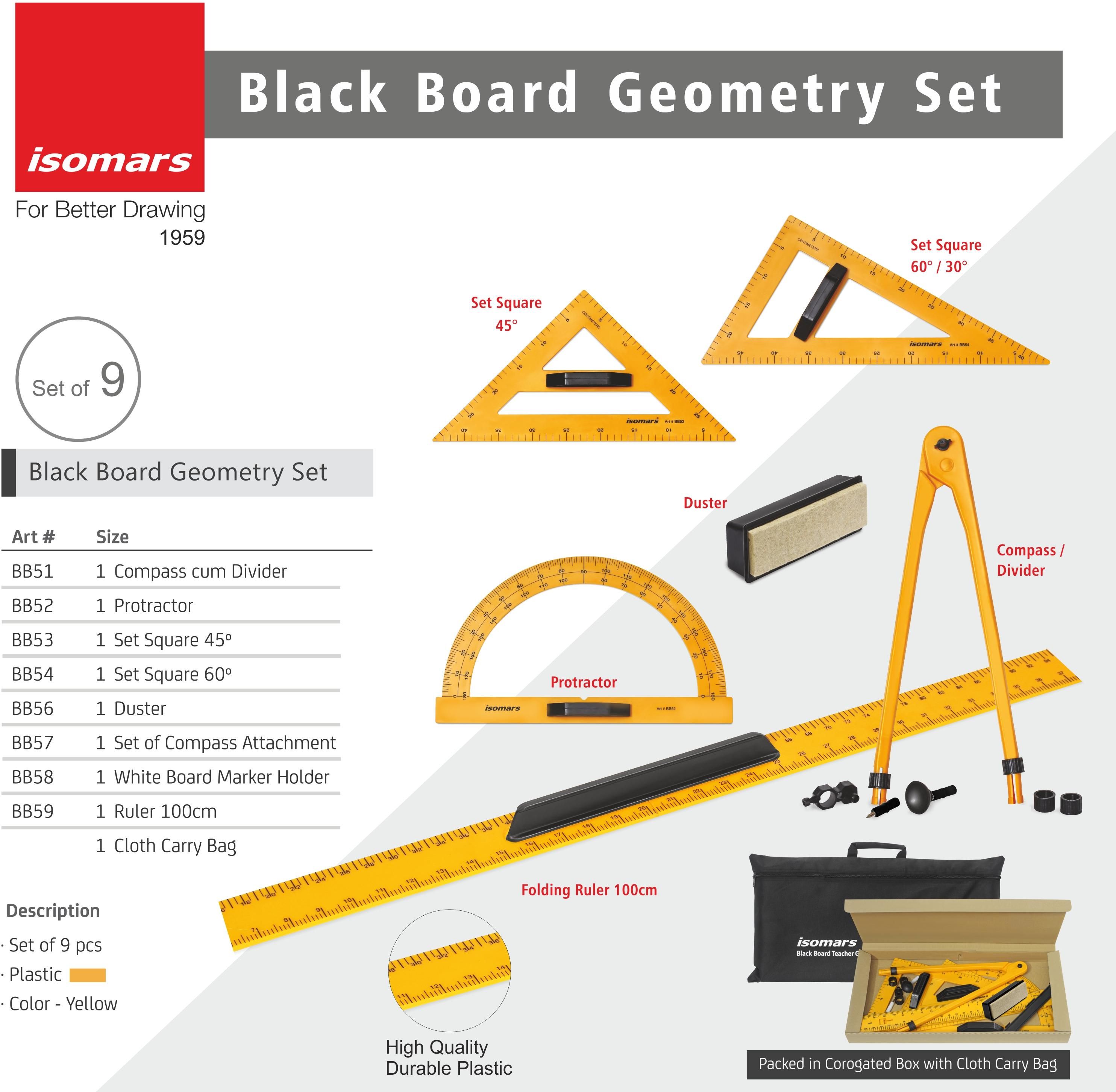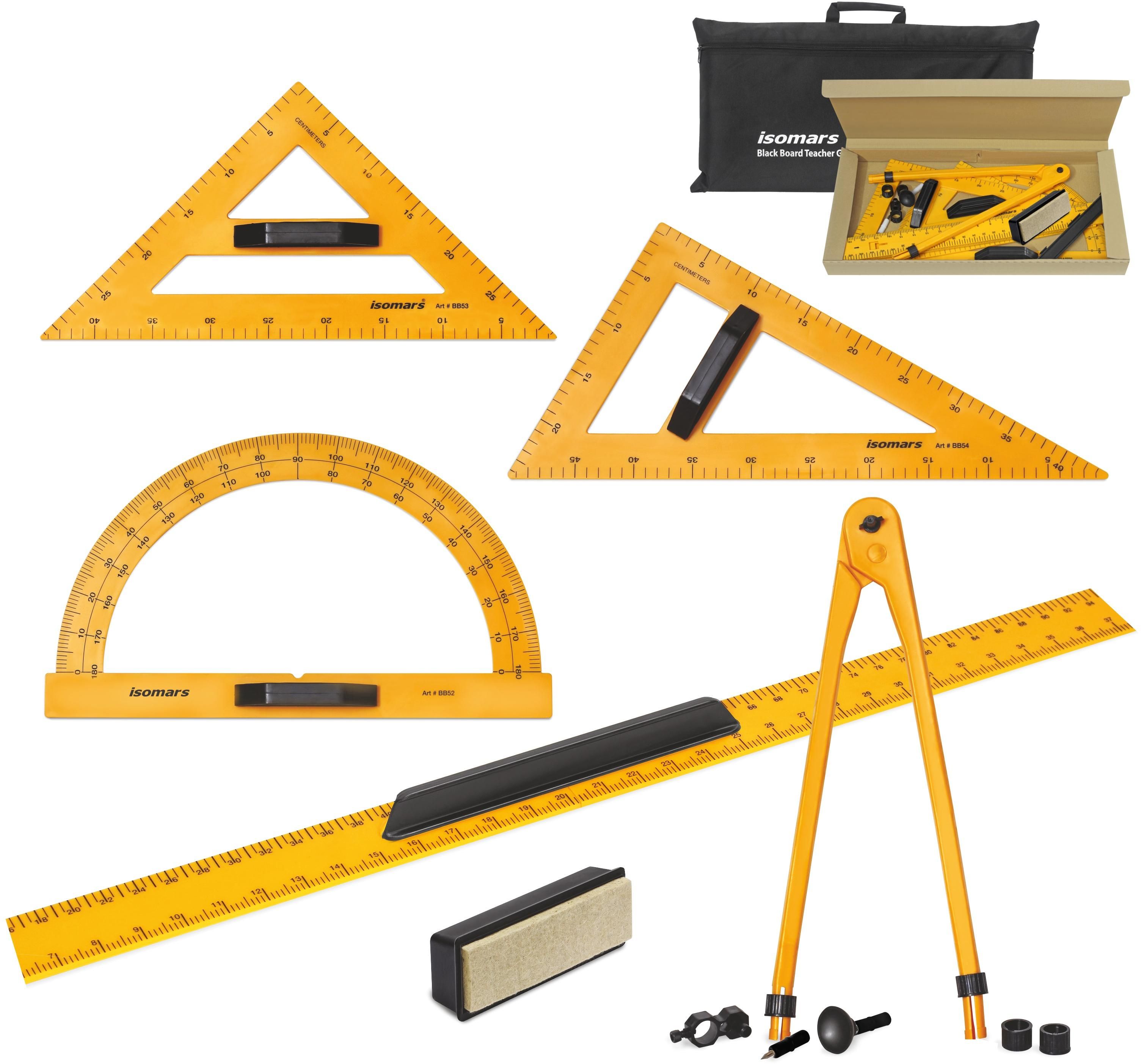 ცარცის დაფაზე სამუშაო გეომეტრიული ნაკრები ჩანთასთან ერთად Isomars