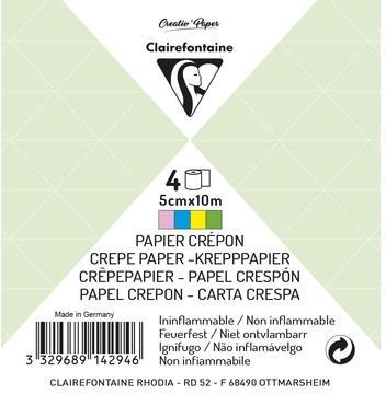 ცეცხლგამძლე კრეპის ქაღალდი 4 ფერიანი სეტი ერთი ხვიის ზომა:5სმX10მ Clairefontaine 10მ
