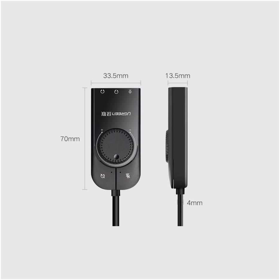 ხმის ბარათი UGREEN CM129 (40964) USB External Stereo Sound, card 3,5 mm mini jack with volume control Adapter 15cm (Black)