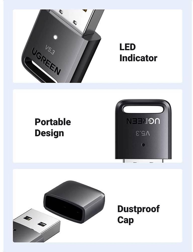 Bluetooth ადაპტერი UGREEN CM591 (90225), USB Bluetooth 5.3 Adapter, Black