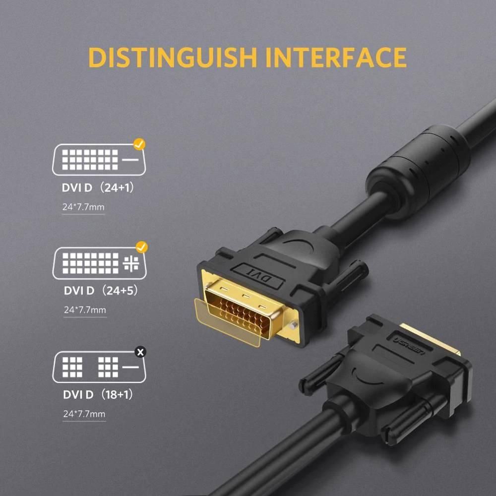 DVI კაბელი 2 მ, UGREEN DV101 (11604) DVI-D 24+1 Male to Male Dual Link ვიდეო კაბელი, შავი.