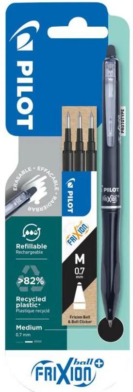 FRIXION BALL PLUS საშლელიანი კალამი ბლისტერში + 3 კარტრიჯი Pilot 0.7მმ წვერით