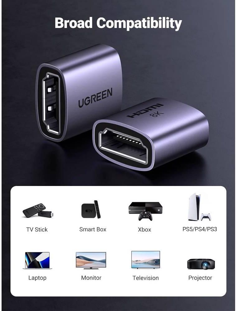 HDMI ადაპტერი, UGREEN HD159 (90592), HDMI Female to HDMI Female ადაპტერი, ნაცრისფერი.