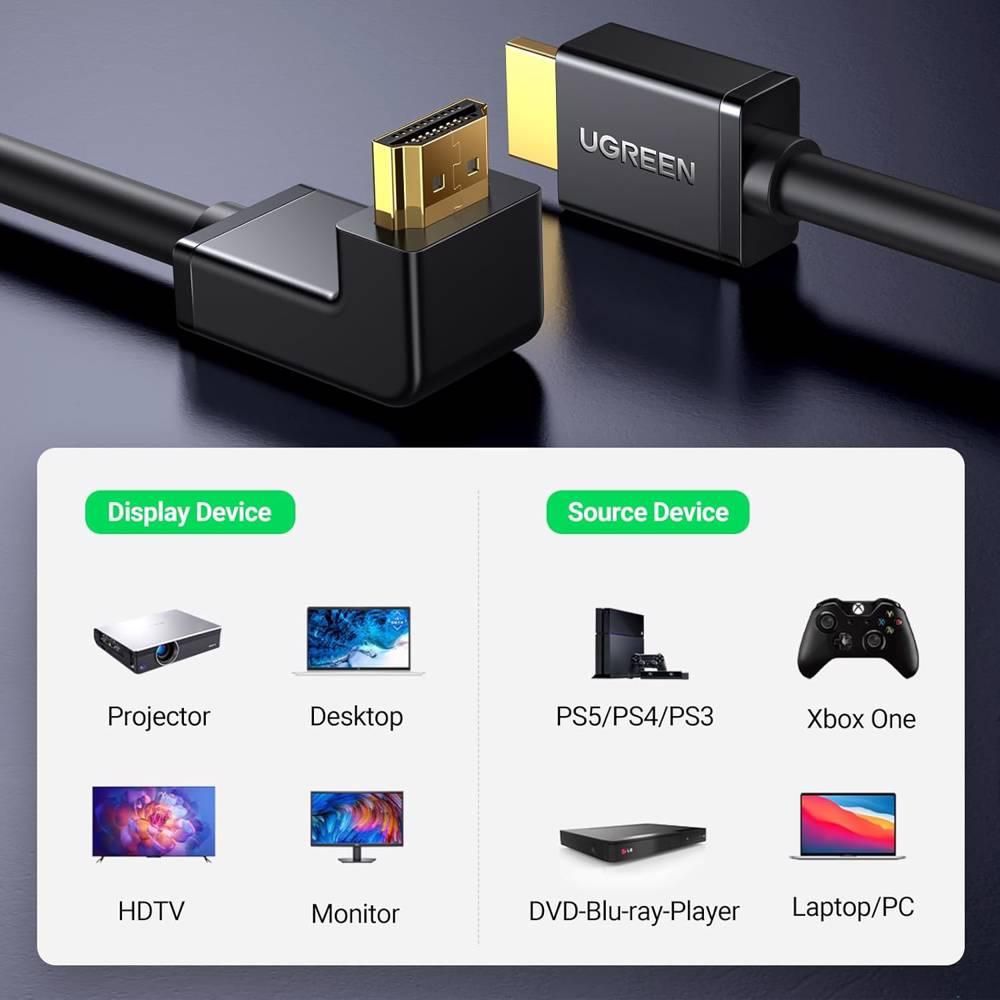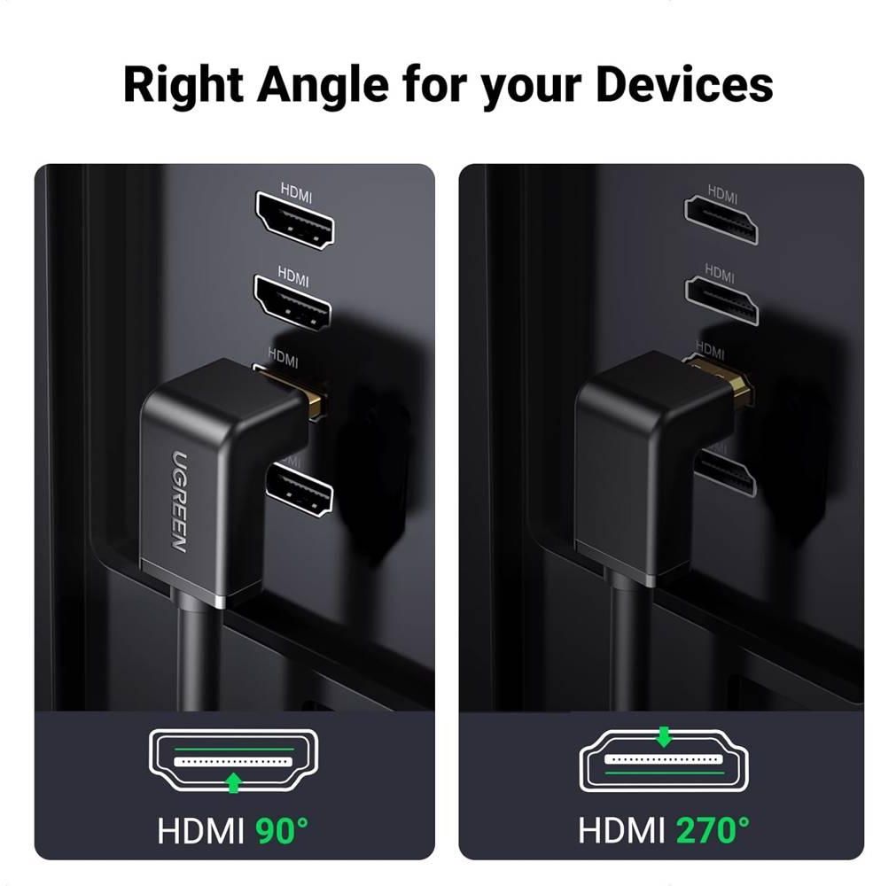 HDMI კაბელი 2 მ, UGREEN HD103 (10173), 4K HDMI Cable Male to Male, 90 გრადუსი, შავი.