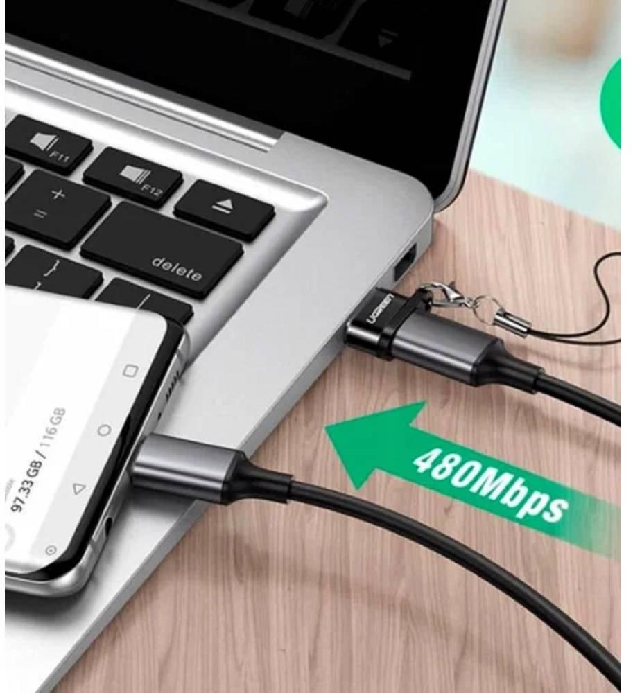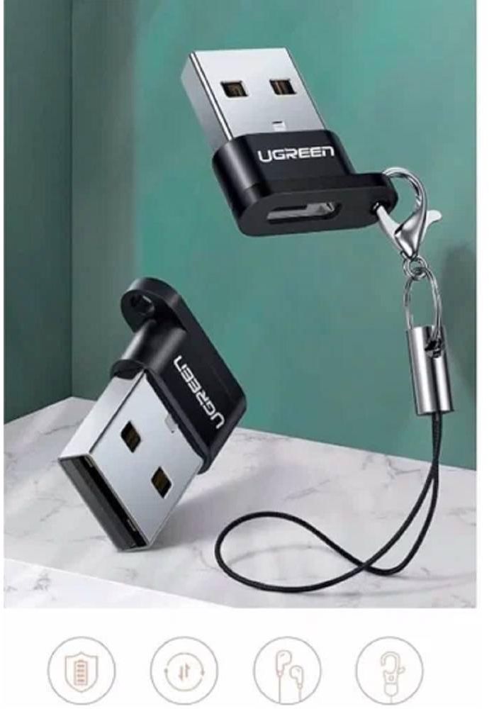 USB ადაპტერი, UGREEN US280 (50568), USB-A Male To Type-C Female Adapter, შავი.