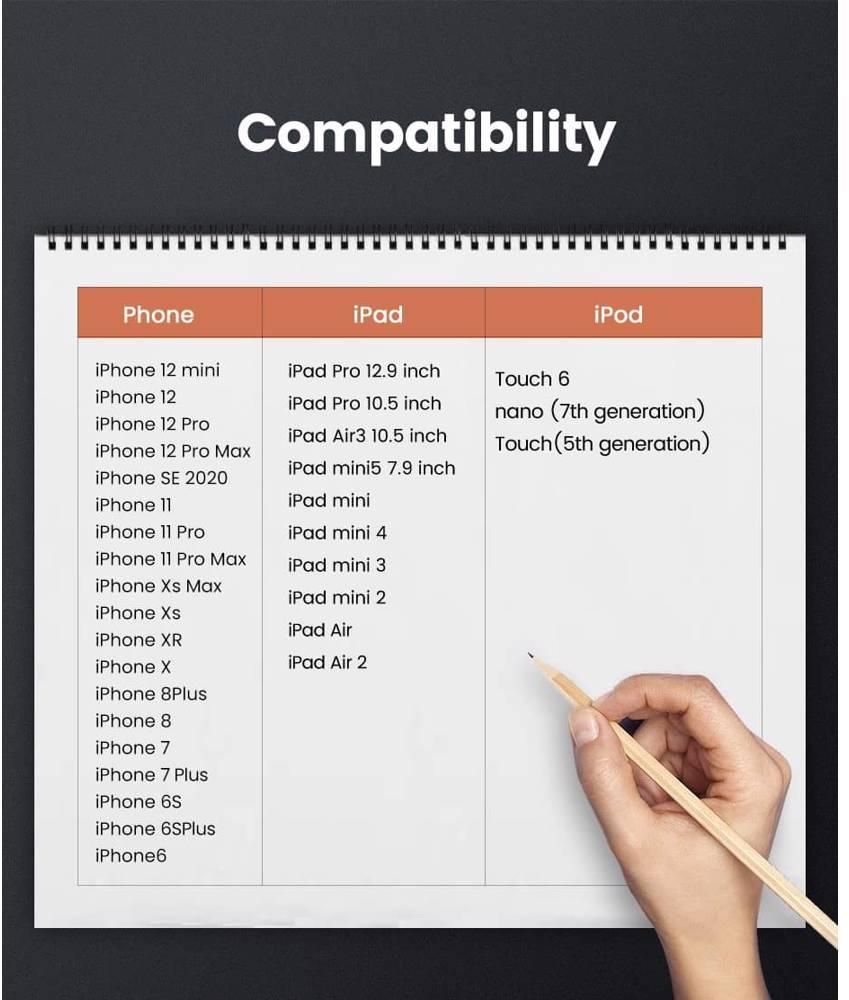 თავსებადია iPhone, iPad Air, iPad mini / mini2, iPad მე -4 თაობის, iPod მე -5 თაობის და iPod nano მე -7 თაობისთვის