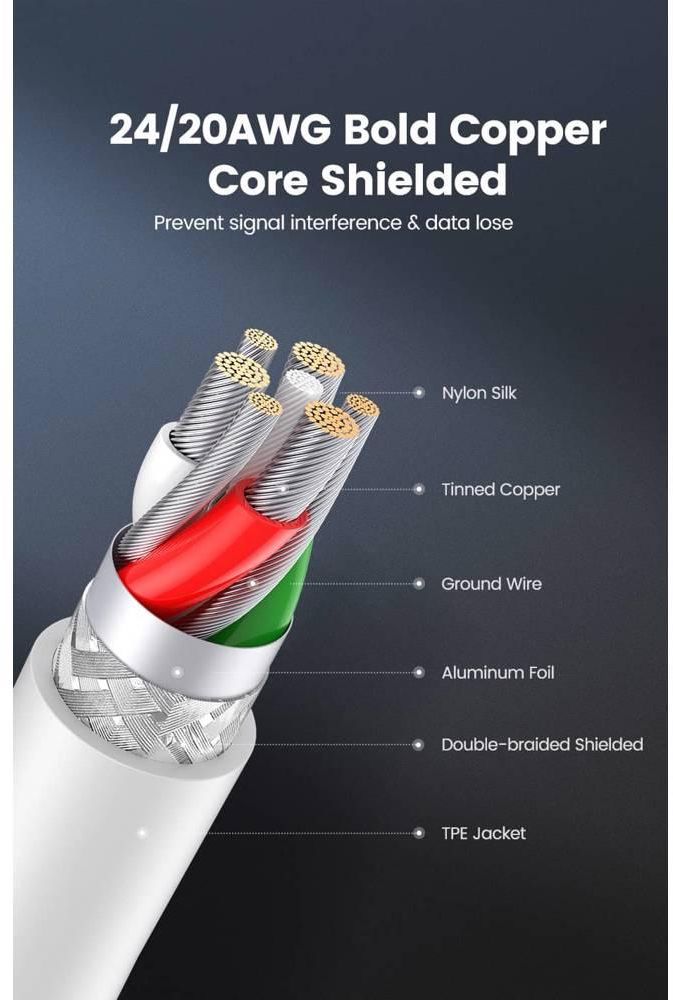 კონექტორი: USB 2.0 Male ×1; Linghtning Male ×1.
