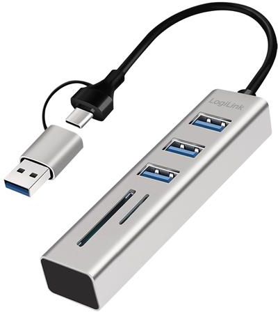 USB ჰაბი: Logilink UA0445 USB 3.0 Hub 3xUSB-A SD/microSD Slot 5Gbps Silver