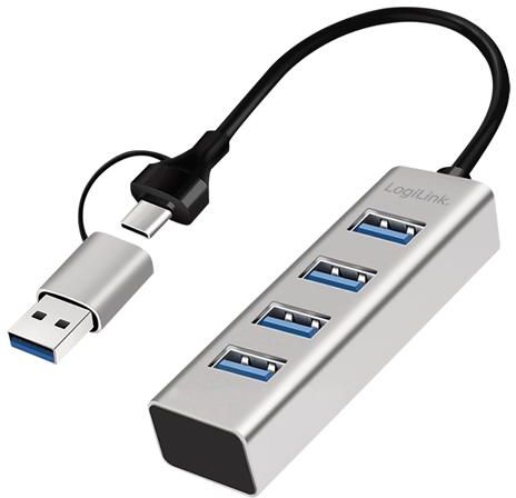 USB ჰაბი: Logilink UA0455 USB 3.0 Hub 4xUSB-A 5 Gbit/s 2-in-1 connection Cable Silver