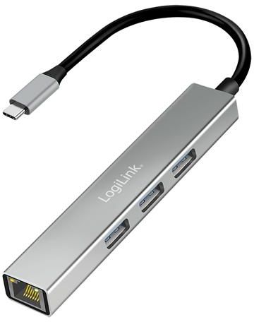 USB ჰაბი: Logilink UA0461 USB-C 3-Port Hub Gigabit Adapter 15cm