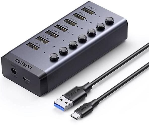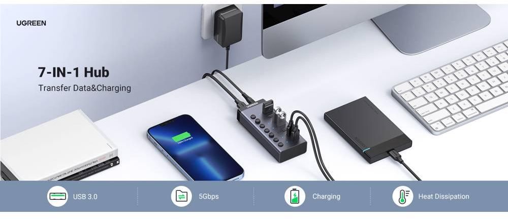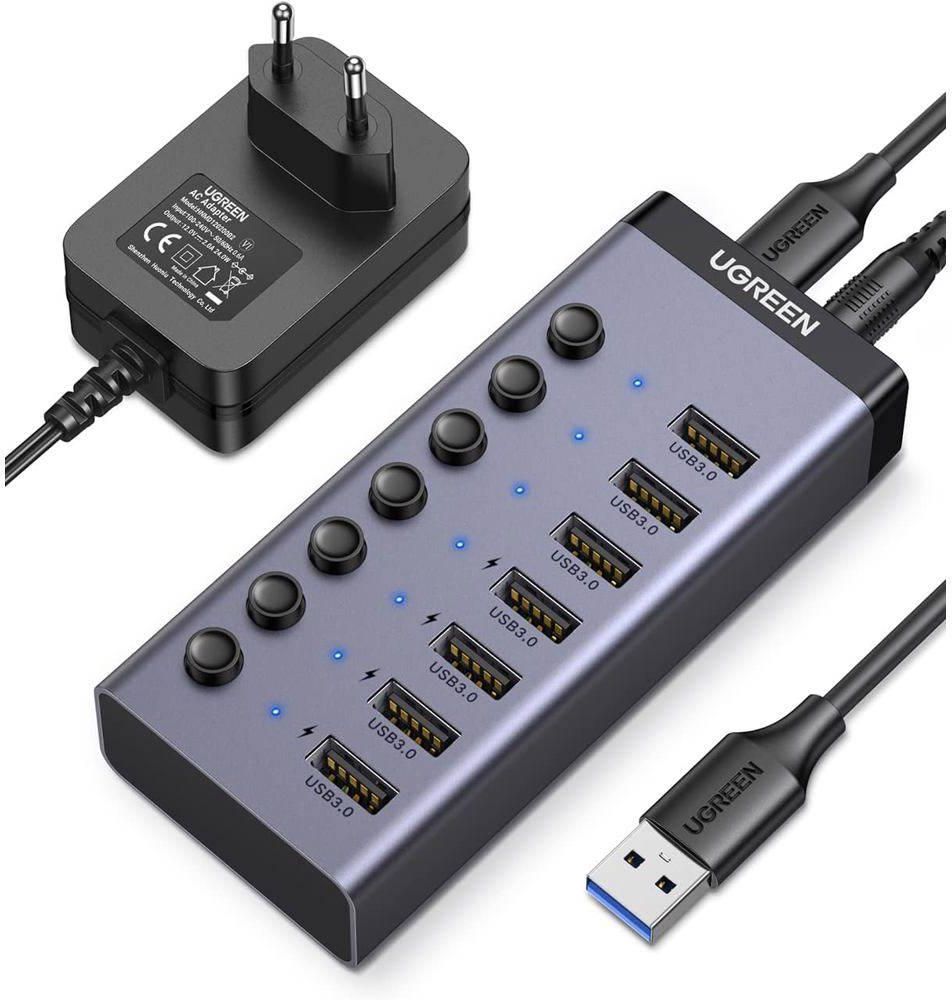 USB 3.0 ჰაბი 7 პორტით, UGREEN CM481 (90307) , USB-A 12V 2A, ნაცრისფერი